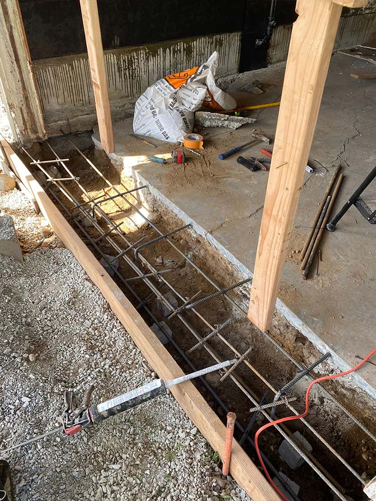 Stabilized a sloped kitchen foundation in a Seattle home by installing concentric push piers along outer walls, reinforcing the garage slab, and providing selective lifting, ensuring long-term support while minimizing stress on floors and adjacent rooms.
